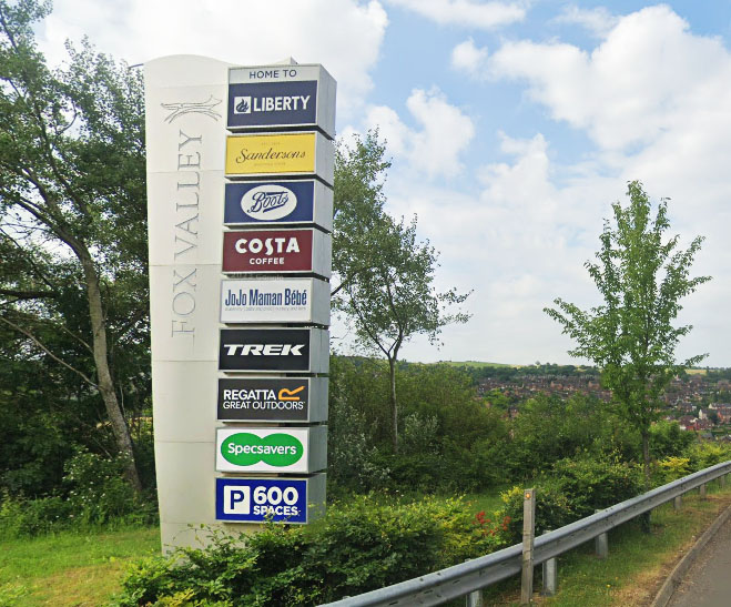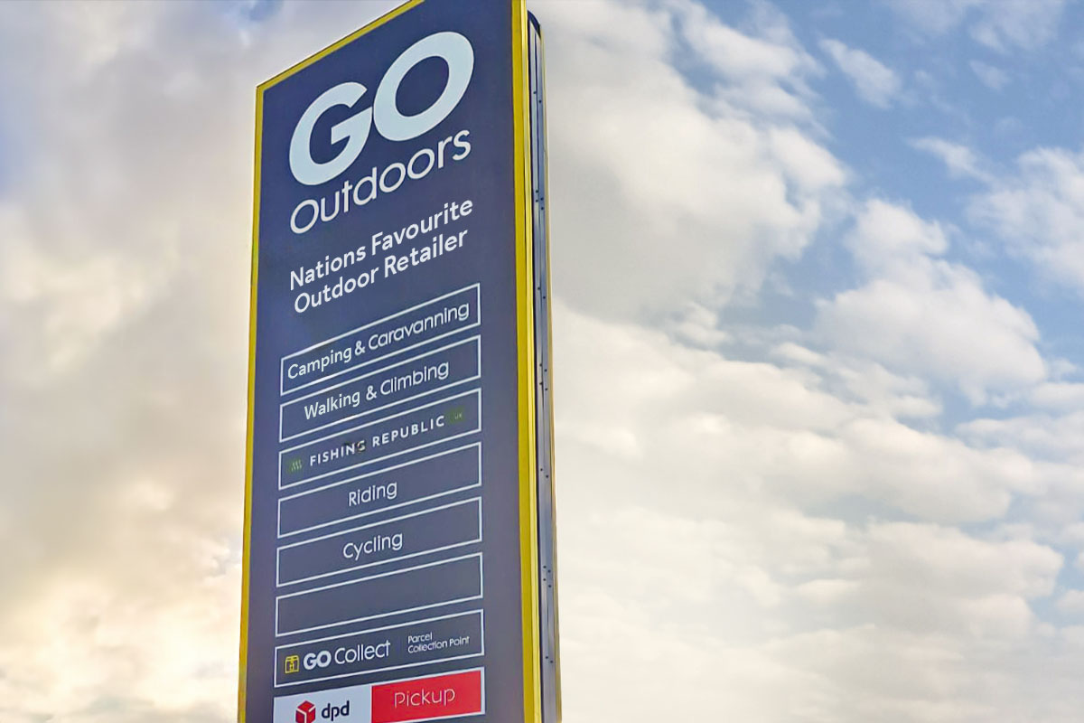 In locations like retail parks with multiple brands, totems clad with logos can be effortlessly updated by swapping out panels.